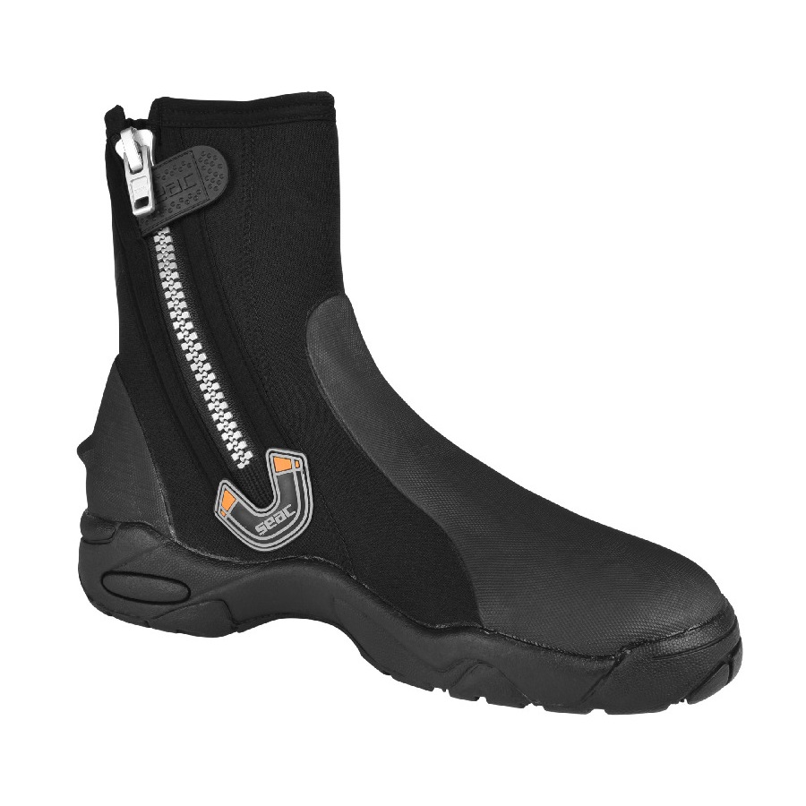 Giày lặn Seac Pro HD dễ dàng mang vào và tháo ra nhờ khóa kéo dễ cầm nắm và khóa dán gia cố ở bên hông ủng, đảm bảo ủng luôn được đóng kín khi lặn. Những đôi ủng lặn nước lạnh này có thể chịu được nước ở nhiệt độ từ 50 đến 60 độ F.